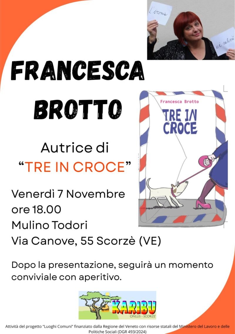 Ci vediamo al nostro prossimo appuntamento il giorno 7 Novembre per la presentazione del nuovo libro di Francesca Brotto! Vi aspettiamo numerosi/e!